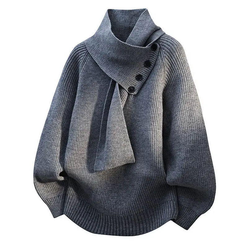 Men’s Fashion Scarf Design Sweater Casual Loose Button Decor Knit Pullover for Autumn Winter