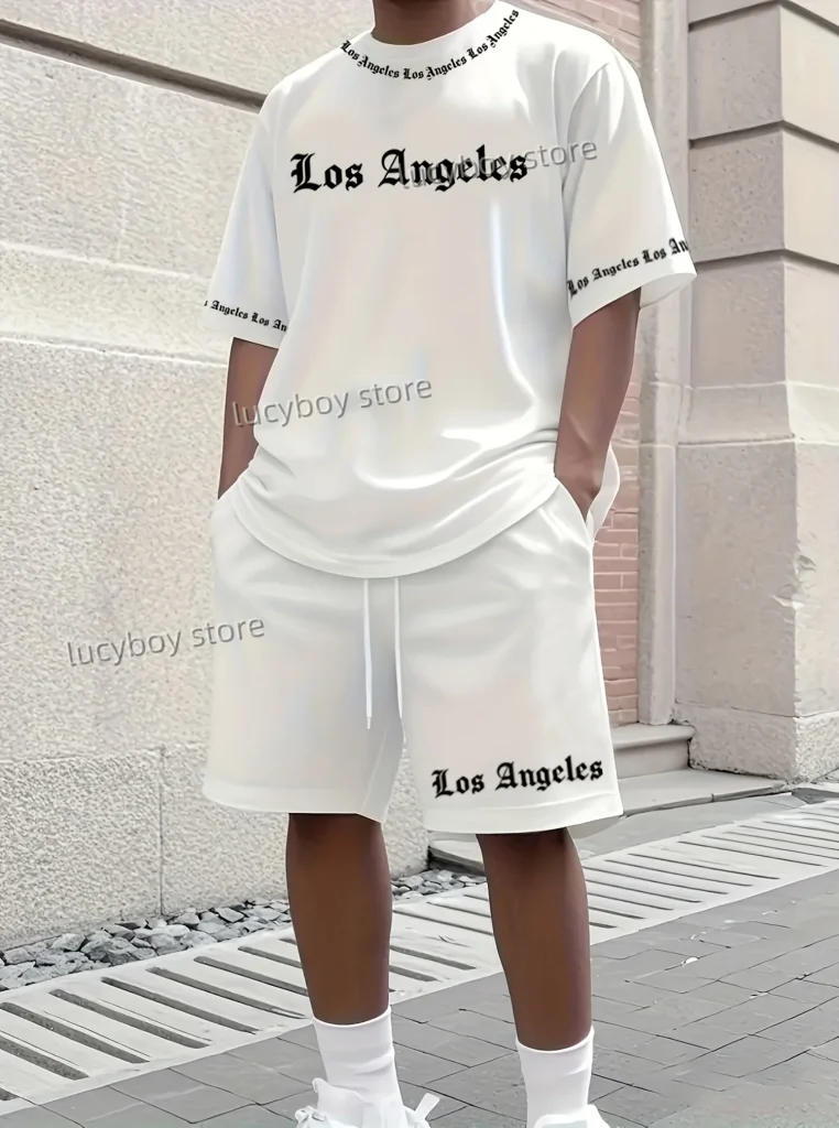 2025 Los Angeles Printed Men’s Suit 2 Pieces Set Casual Suit SportswearFitness Set Men’s Tracksuit Oversized Clothes