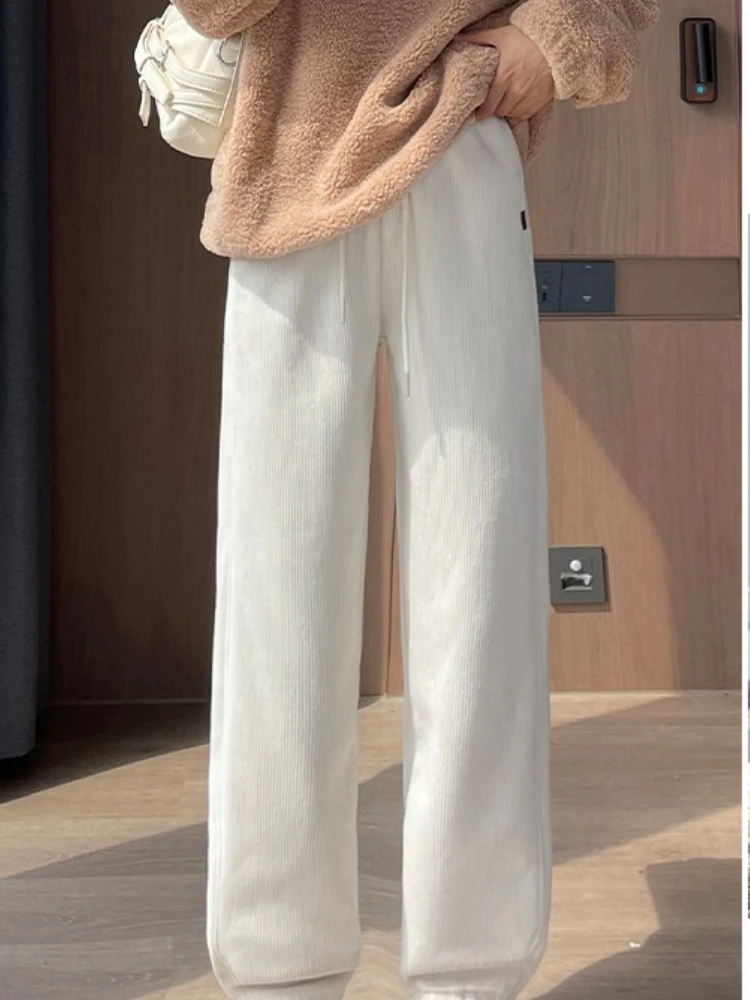 Women’s Fleece Wide Leg Pants Winter High Waist Long Pants Loose Casual