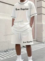 2025 Los Angeles Printed Men’s Suit 2 Pieces Set Casual Suit SportswearFitness Set Men’s Tracksuit Oversized Clothes