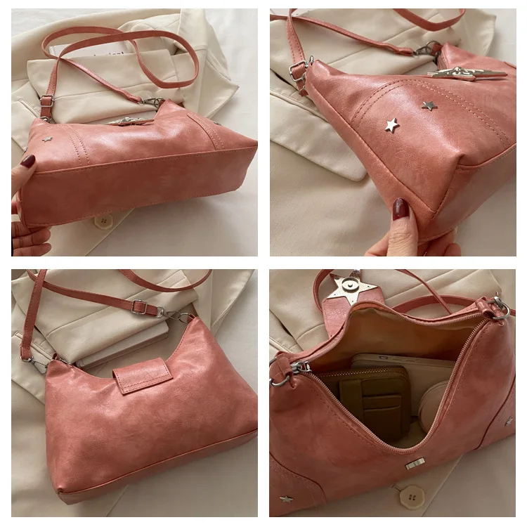 Punk Style Star Design Women Hobos Shoulder Bags Casual Y2k Cool Hot Girls Pu Crossbody Bag Commuter Female Phone Handbags Purse