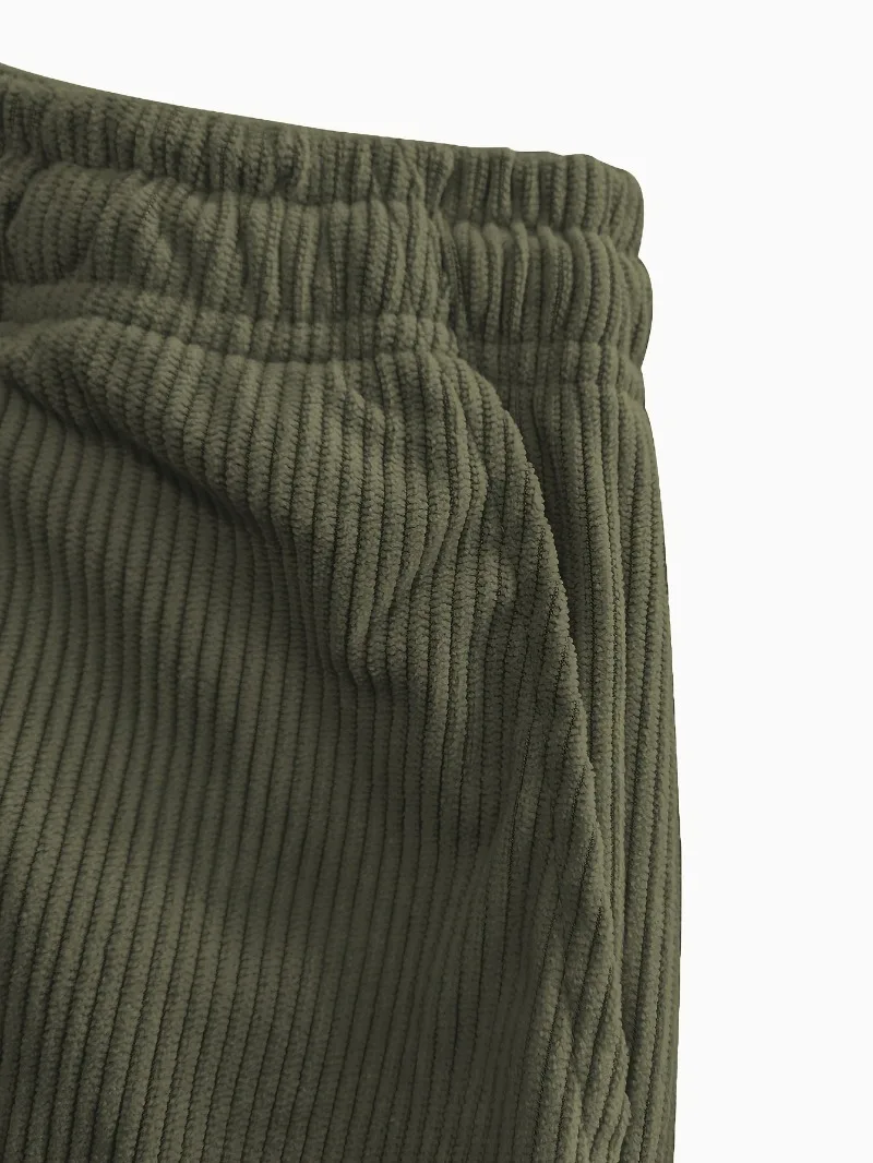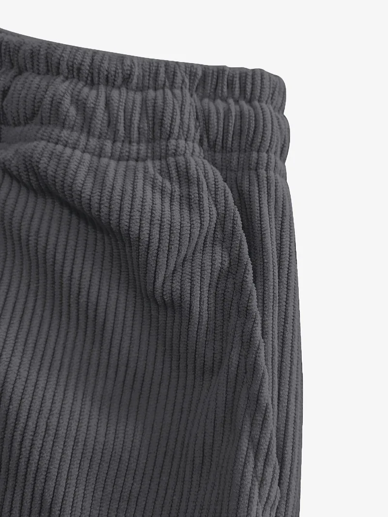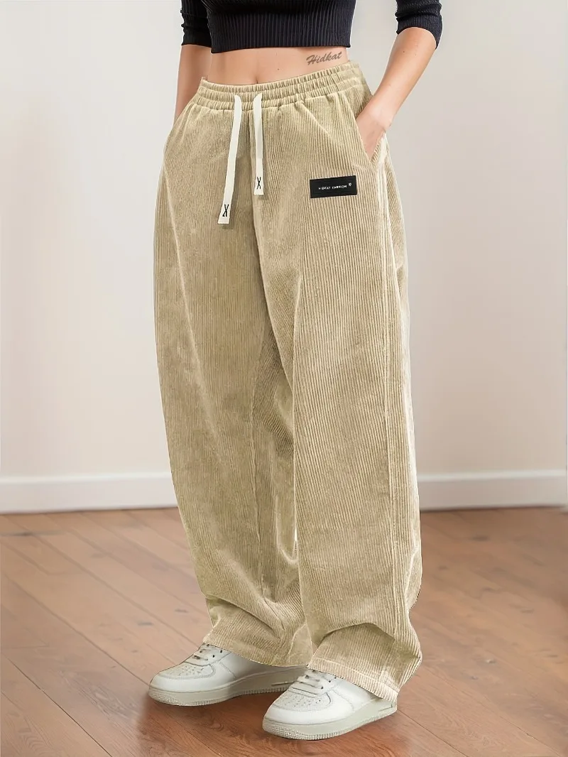 Women’s Corduroy Pants Texture Straight-Leg Trousers with Drawstring Waist & White Piping – All-Season Casual to Semi-Formal