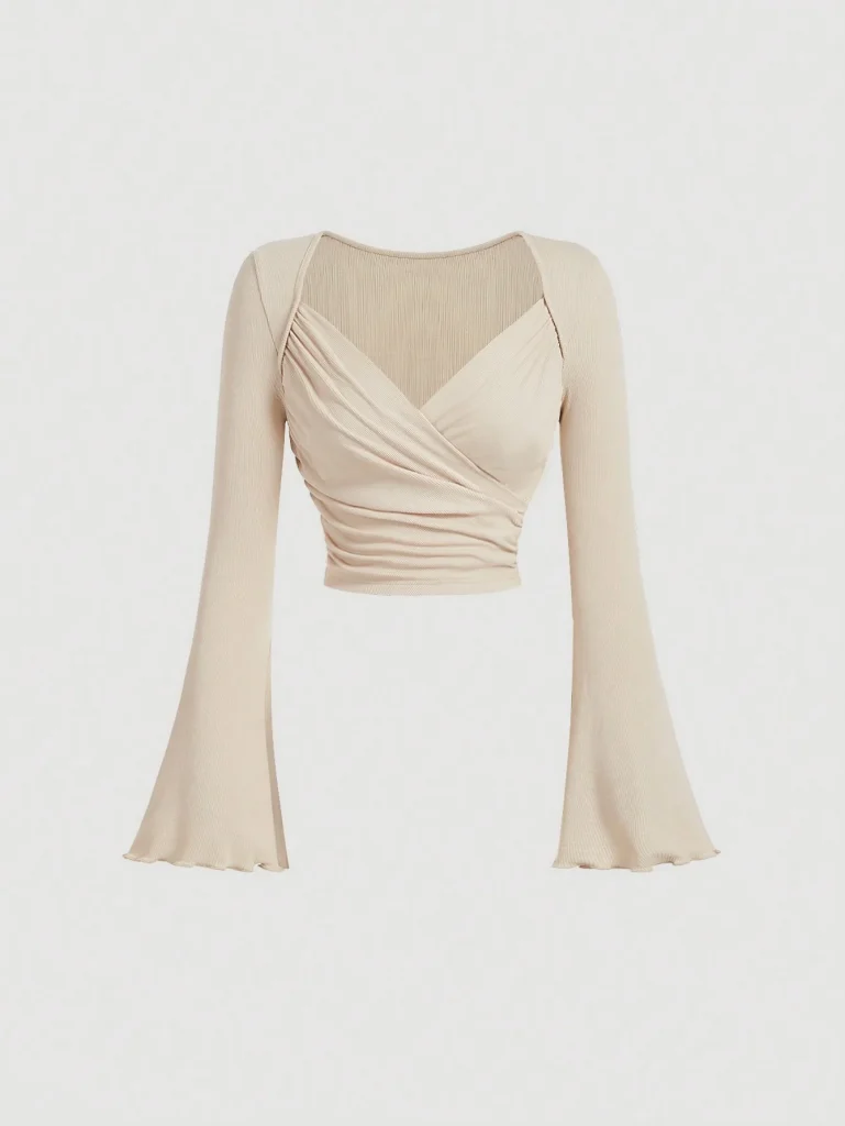 Sexy women’s fashion Squared Neck Cropped T-shirt, New Casual Long Sleeve Solid T-shirt, Women’s Clothing Tops
