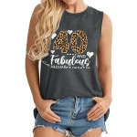 40th Birthday Shirt for Women Vintage Heart 40 and Fabulous Leopard Print Summer Outfit Fabulous Birthday Women Tanks Tops